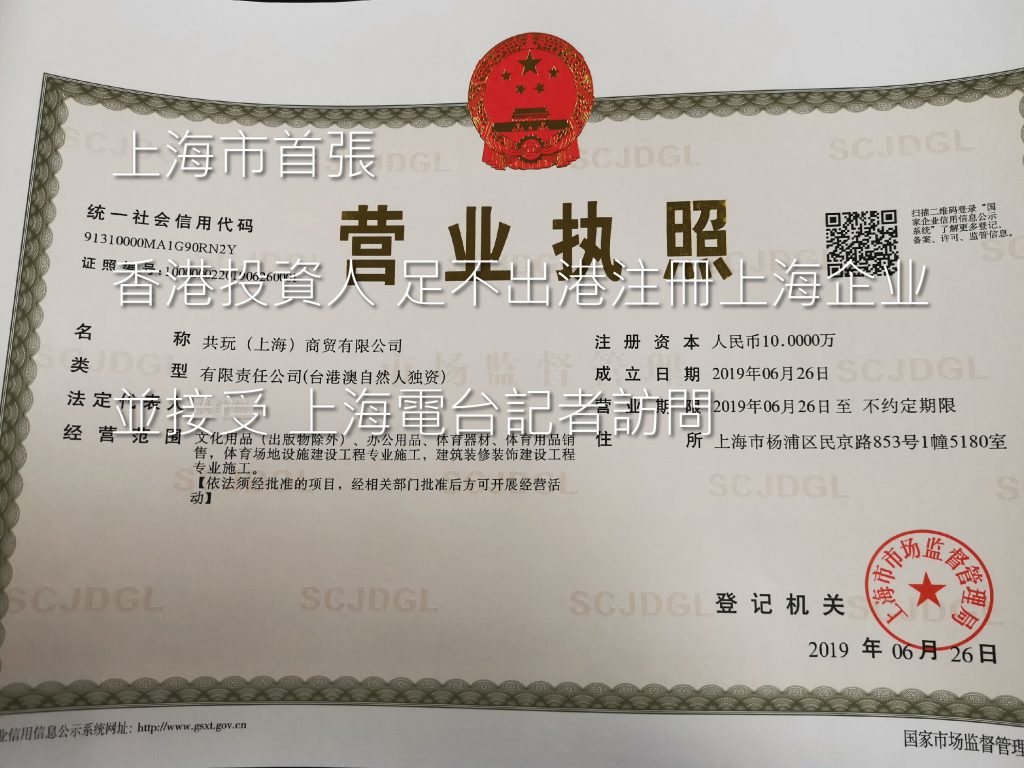 上海市首張,香港投資人,足不出港注冊上海企业 ,並接受上海電台訪問